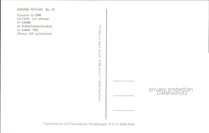 Flugzeuge Zivil Cubana Ilyushin IL-76MD CU-T1258 postalisch nicht gelaufen Erhaltung siehe scans