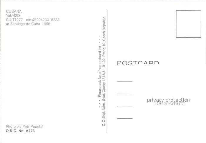 Flugzeuge Zivil Cubana Yak-42D CU-T1277 c/n 4520423016238 postalisch nicht gelaufen Erhaltung siehe scans