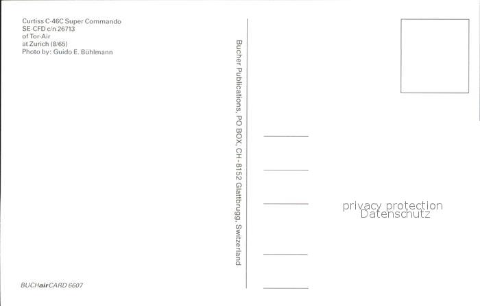 Flugzeuge Zivil Curtiss C-46C Super Commando SE-CFD c7N 26713 Tor-Air postalisch nicht gelaufen Erhaltung siehe scans
