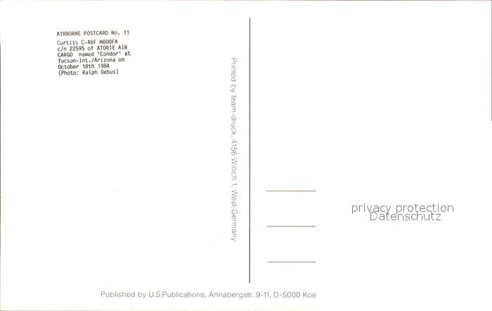 Flugzeuge Zivil Curtiss C-46F N800FA c/n 22595 Atorie Air Cargo Condor postalisch nicht gelaufen Erhaltung siehe scans