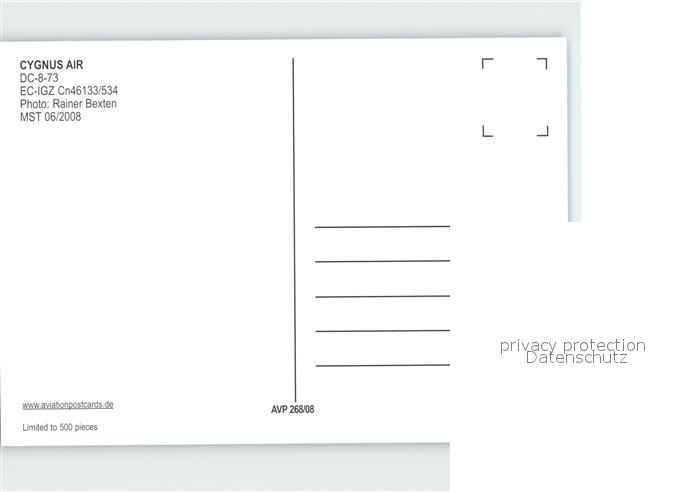 Flugzeuge Zivil Cygnus Air DC-8-73 EC-IGZ Cn 46133/534 postalisch nicht gelaufen Erhaltung siehe scans