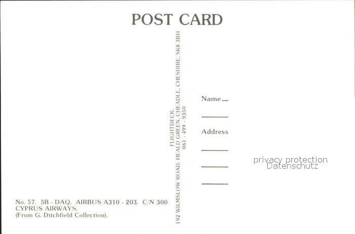 Flugzeuge Zivil Cyprus Airways A310-203 c/n 300 postalisch nicht gelaufen Erhaltung siehe scans
