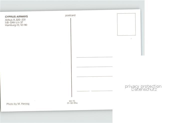 Flugzeuge Zivil Cyprus Airways Airbus A.320-231 5B-DAV c/n 37 postalisch nicht gelaufen Erhaltung siehe scans