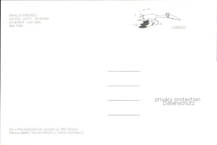 Flugzeuge Zivil Daallo Airlines Let 410 UVP-E RA-67569 cn 861607 postalisch nicht gelaufen Erhaltung siehe scans