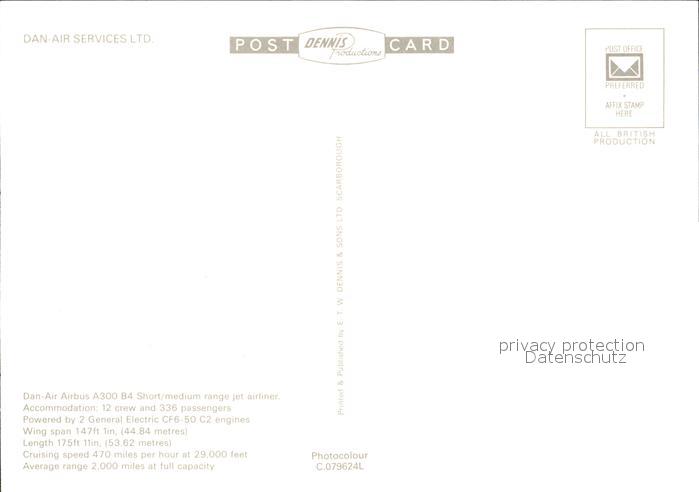 Flugzeuge Zivil Dan-Air A300 B4 Airbus postalisch nicht gelaufen Erhaltung siehe scans