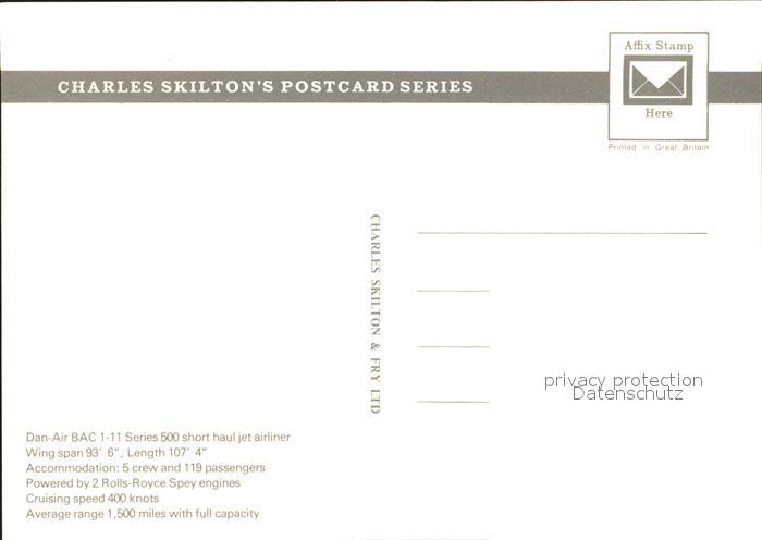 Flugzeuge Zivil Dan-Air BAC 1-11 Series 500 postalisch nicht gelaufen Erhaltung siehe scans