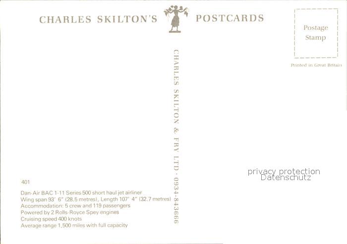 Flugzeuge Zivil Dan-Air BAC 1-11 Series 500 postalisch nicht gelaufen Erhaltung siehe scans