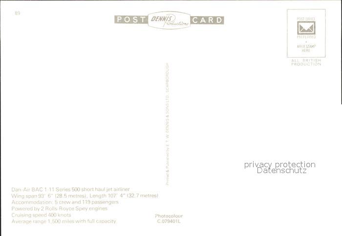 Flugzeuge Zivil Dan-Air BAC 1-11 Series 500 postalisch nicht gelaufen Erhaltung siehe scans