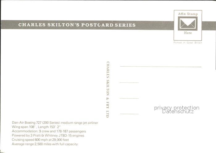 Flugzeuge Zivil Dan-Air Boeing 727 200 Series postalisch nicht gelaufen Erhaltung siehe scans