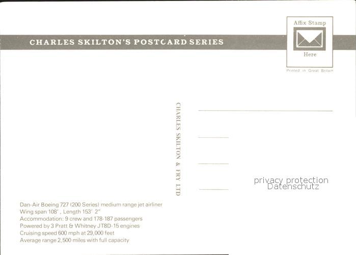 Flugzeuge Zivil Dan-Air Boeing 727 200 Series postalisch nicht gelaufen Erhaltung siehe scans