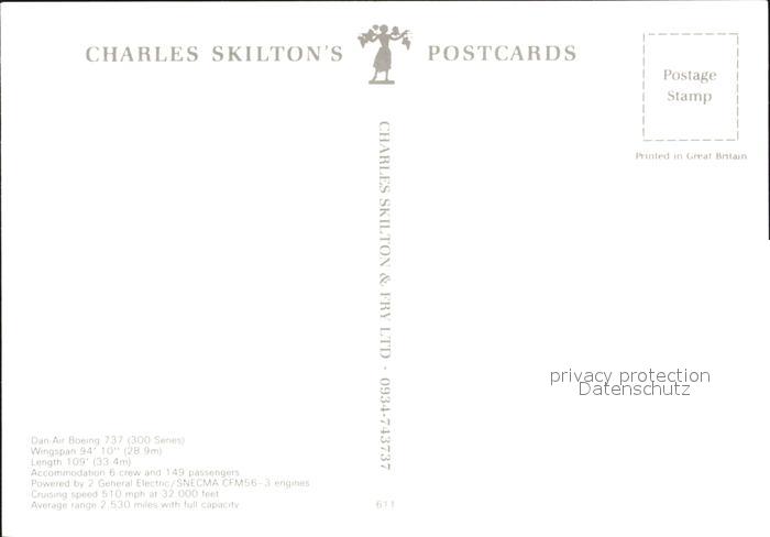 Flugzeuge Zivil Dan-Air Boeing 737 300 Series postalisch nicht gelaufen Erhaltung siehe scans