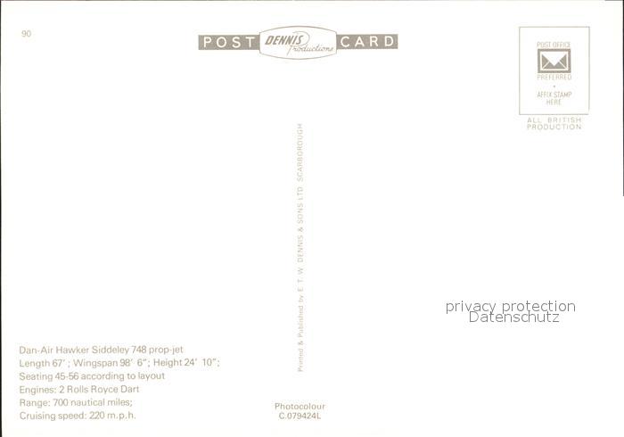 Flugzeuge Zivil Dan-Air HS748 postalisch nicht gelaufen Erhaltung siehe scans