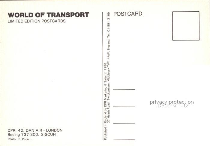 Flugzeuge Zivil Dan-Air London Boeing 737-300 G-SCUH postalisch nicht gelaufen Erhaltung siehe scans