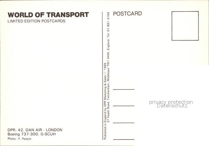 Flugzeuge Zivil Dan Air London Boeing 737-300 G-SCUH postalisch nicht gelaufen Erhaltung siehe scans