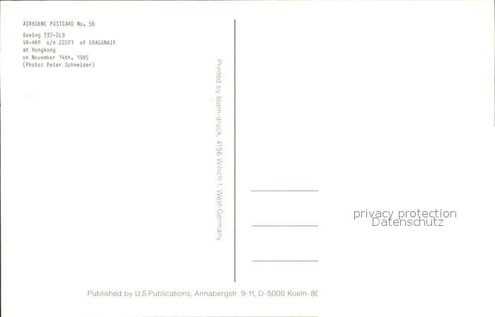 Flugzeuge Zivil Dargonair Boeing 737-2L9 VR-HKP c/n 22071 postalisch nicht gelaufen Erhaltung siehe scans