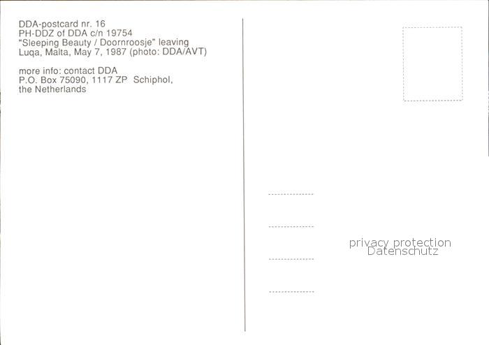 Flugzeuge Zivil DDA Sleeping Beauty Doornroosje PH-DDZ c/n 19754 postalisch nicht gelaufen Erhaltung siehe scans