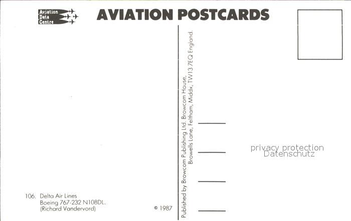 Flugzeuge Zivil Delta Air Lines Boeing 767-232 N108DL postalisch nicht gelaufen Erhaltung siehe scans