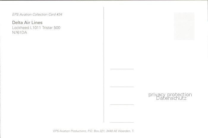 Flugzeuge Zivil Delta Air Lines Lockheed L1011 Tristar 500 N761 DA postalisch nicht gelaufen Erhaltung siehe scans