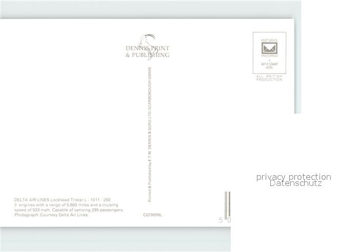 Flugzeuge Zivil Delta Air Lines Lockheed Tristar L-1011-250 postalisch nicht gelaufen Erhaltung siehe scans