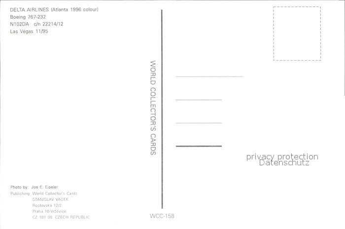 Flugzeuge Zivil Delta Airlines Boeing 767-232 N102DA c/n 22214/12 postalisch nicht gelaufen Erhaltung siehe scans