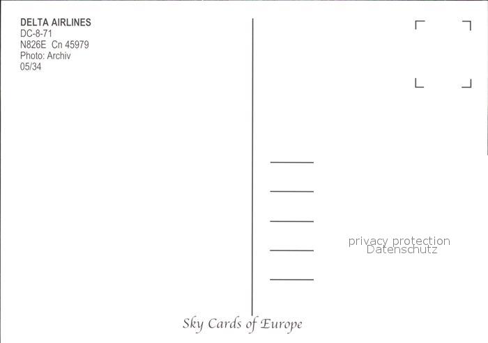 Flugzeuge Zivil Delta Airlines DC-8-71 N826E cn 45979 postalisch nicht gelaufen Erhaltung siehe scans