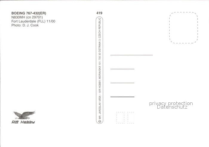 Flugzeuge Zivil Delta Boeing 767-432 ER N830MH cn 29701 postalisch nicht gelaufen Erhaltung siehe scans