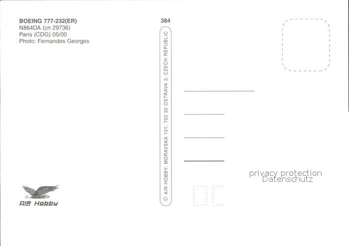 Flugzeuge Zivil Delta Boeing 777-232 N864DA c/n 29736 postalisch nicht gelaufen Erhaltung siehe scans