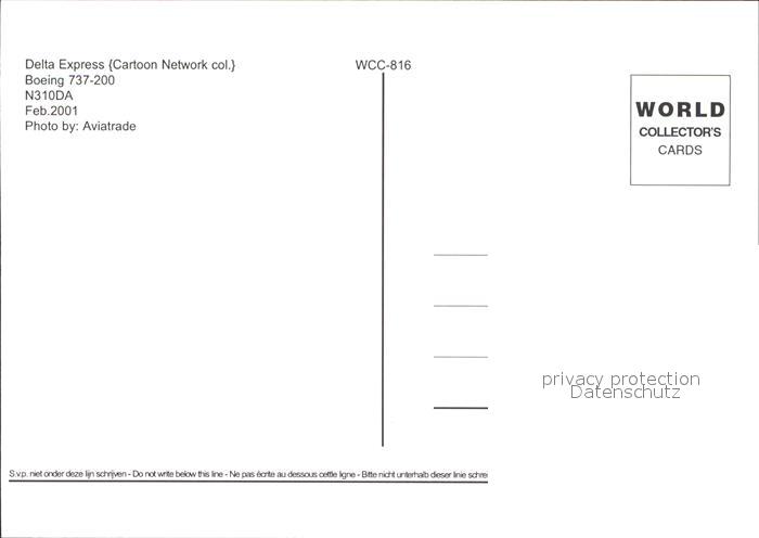 Flugzeuge Zivil Delta Express Boeing 737-200 N310DA postalisch nicht gelaufen Erhaltung siehe scans