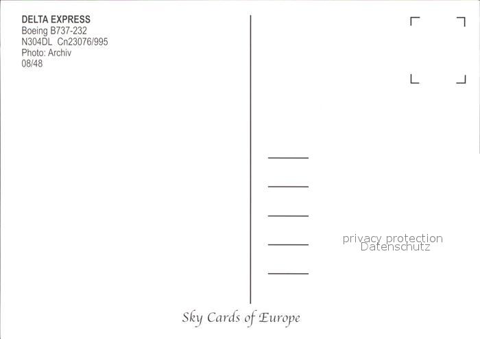 Flugzeuge Zivil Delta Express Boeing 737-232 N304DL Cn23076/995 postalisch nicht gelaufen Erhaltung siehe scans