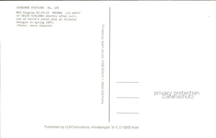 Flugzeuge Zivil Delta McD Douglas DC-10-10 N908WA c/n 46977 postalisch nicht gelaufen