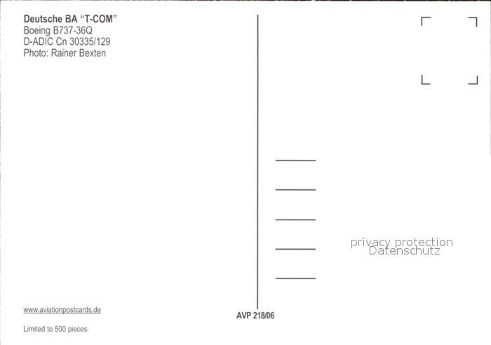 Flugzeuge Zivil Deutsche BA T-Com Boeing B737-36Q D-ADIC Cn 30335/129 postalisch nicht gelaufen