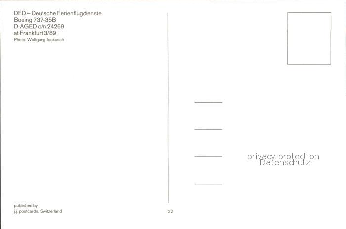 Flugzeuge Zivil DFD Deutsche Ferienflugdienste Boeing 737-35B D-AGED c/n 24269 postalisch nicht gelaufen Erhaltung siehe scans