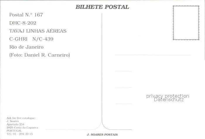Flugzeuge Zivil DHC-8-202 Tavaj Linhas Aereas C-GHRI N/C-439 postalisch nicht gelaufen Erhaltung siehe scans