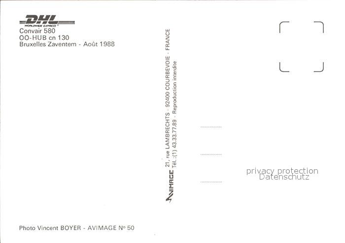 Flugzeuge Zivil DHL Convair 580 OO-HUB cn 130 postalisch nicht gelaufen Erhaltung siehe scans