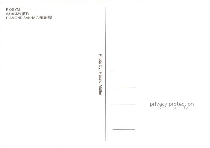 Flugzeuge Zivil Diamond Sakha Airlines A310-324 F-OGYM postalisch nicht gelaufen Erhaltung siehe scans