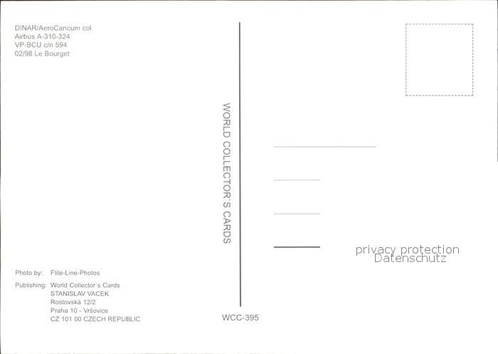 Flugzeuge Zivil Dinar/AeroCancum col. Airbus 310-324 VP-BCU c/n 594 postalisch nicht gelaufen Erhaltung siehe scans