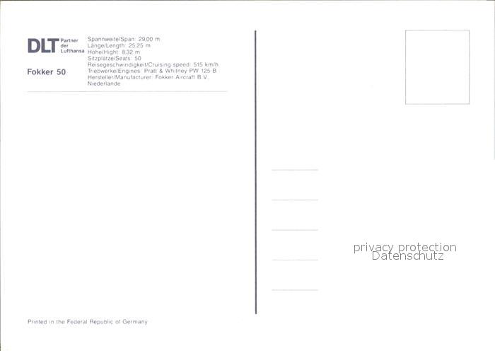 Flugzeuge Zivil DLT Fokker 50 postalisch nicht gelaufen Erhaltung siehe scans