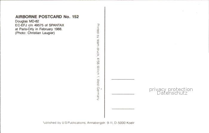 Flugzeuge Zivil Doouglas MD-82 EC-EFJ c/n 49575 Spantax postalisch nicht gelaufen