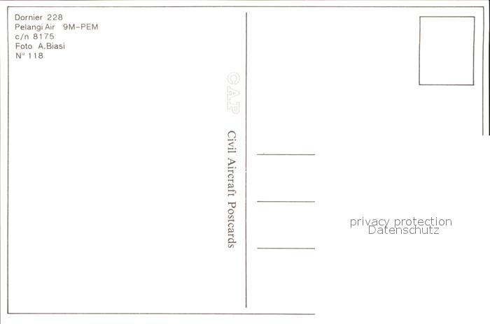 Flugzeuge Zivil Dornier 228 Pelangi Air 9M-PEM c/n 8175 postalisch nicht gelaufen Erhaltung siehe scans