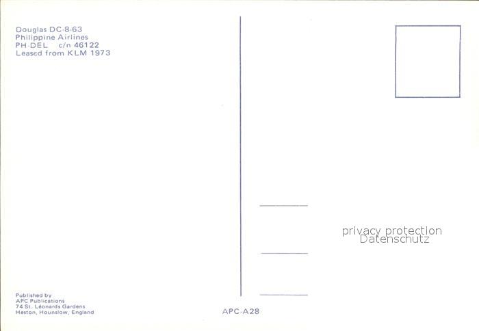 Flugzeuge Zivil Douglas DC-8-63 Philippine Airlines PH-DEL c/n 46122 postalisch nicht gelaufen Erhaltung siehe scans