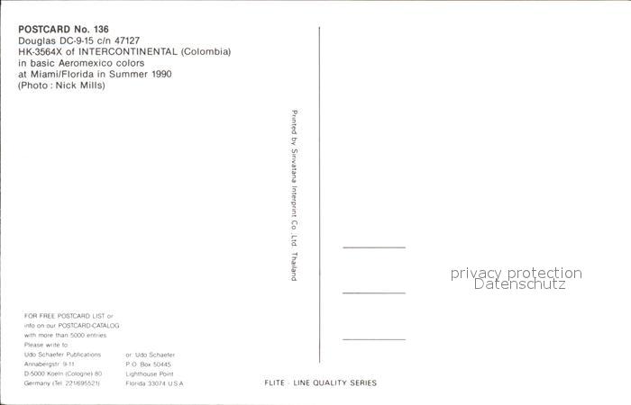 Flugzeuge Zivil Douglas DC-9-15 c/n 47127 HK-3564X Intercontinental Colombia postalisch nicht gelaufen Erhaltung siehe scans