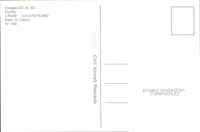 Flugzeuge Zivil Douglas DC-9-32 Eurofly I-RIZW c/n 47575/680 postalisch nicht gelaufen Erhaltung siehe scans