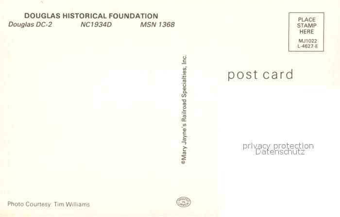 Flugzeuge Zivil Douglas Historical Foundation Douglas DC-2 NC1934D MSN 1368 postalisch nicht gelaufen Erhaltung siehe scans [PaolaD17]
