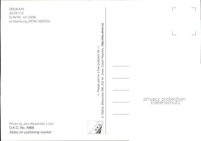 Flugzeuge Zivil Drukair A319-112 D-AVYA c/n 2306 postalisch nicht gelaufen Erhaltung siehe scans