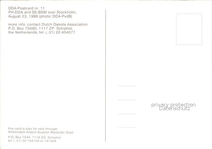 Flugzeuge Zivil Dutch Dakota Association PH-DDA and SE-BSM postalisch nicht gelaufen Erhaltung siehe scans