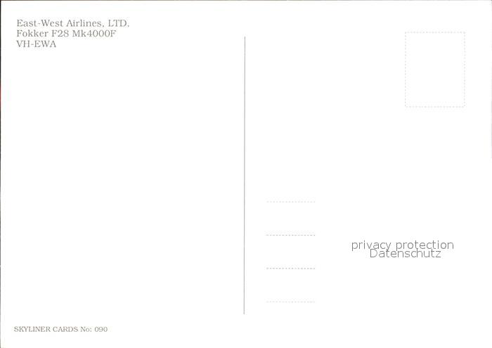 Flugzeuge Zivil East-West Airlines Fokker F28 Mk4000F VH-EWA postalisch nicht gelaufen Erhaltung siehe scans
