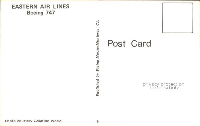 Flugzeuge Zivil EASTERN AIRLINES Boeing 747 postalisch nicht gelaufen Erhaltung siehe scans