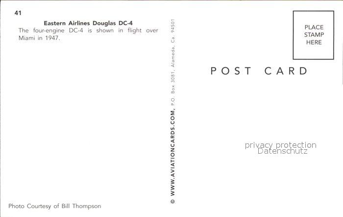 Flugzeuge Zivil Eastern Airlines Douglas DC-4 The Great Silver Fleet postalisch nicht gelaufen Erhaltung siehe scans