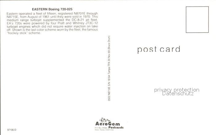 Flugzeuge Zivil Eastern Boeing 720-025 postalisch nicht gelaufen Erhaltung siehe scans