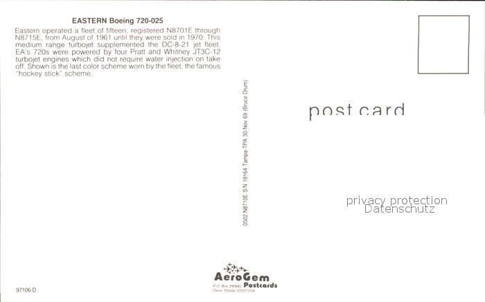71864325 Flugzeuge Zivil Eastern Boeing 720-025 N8710E KatCode 22120000001300